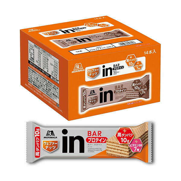 森永 inバー プロテイン ナッツ (14本入×1箱) ナッツペーストの甘味を感じるウェファータイプ 高タンパク10g 東北/東海/信越/関東/北陸のみ受注可能 外装の紙箱に破れ、開封あり 箱崩れ4902888727665