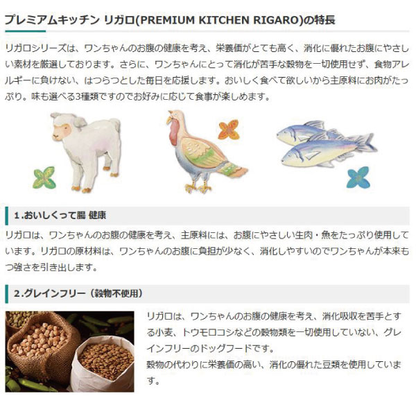 商品名 RIGALO リガロハイプロテイン ターキー 5.8kg 商品説明 おいしくって、腸 健康!おなかの健康を大切に考え、ワンちゃん本来の理想的な食事をとことん追求したプレミアムフード「リガロ」登場!! リガロ( RIGALO )製品は、新鮮さをキープするため、窒素充填包装を行っています。