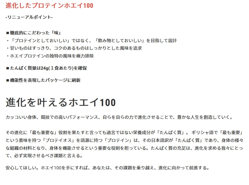 お勧めの摂取タイミング ・トレーニング/運動後30分以内 ・寝る前 ・間食 ・朝の栄養補給 内容量 1050g 主要栄養成分(1食分約35g当たり) <例:リッチバニラ風味> エネルギー:141kcal、たんぱく質:24.2g(無水物換算値:25.0g)、脂質:2.3g、炭水化物:5.8g、ナトリウム:118mg(食塩相当量:0.3g) その他 原材料を参照の上、食物アレルギーの心配のある方はご使用をお控えください。